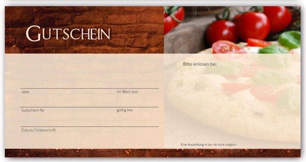 Geschenkgutschein für Gastronomie, Restaurant, Pizzeria