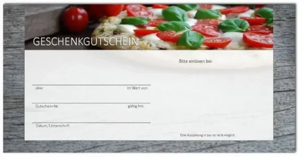 Geschenkgutschein für Gastronomie, Restaurant, Pizzeria
