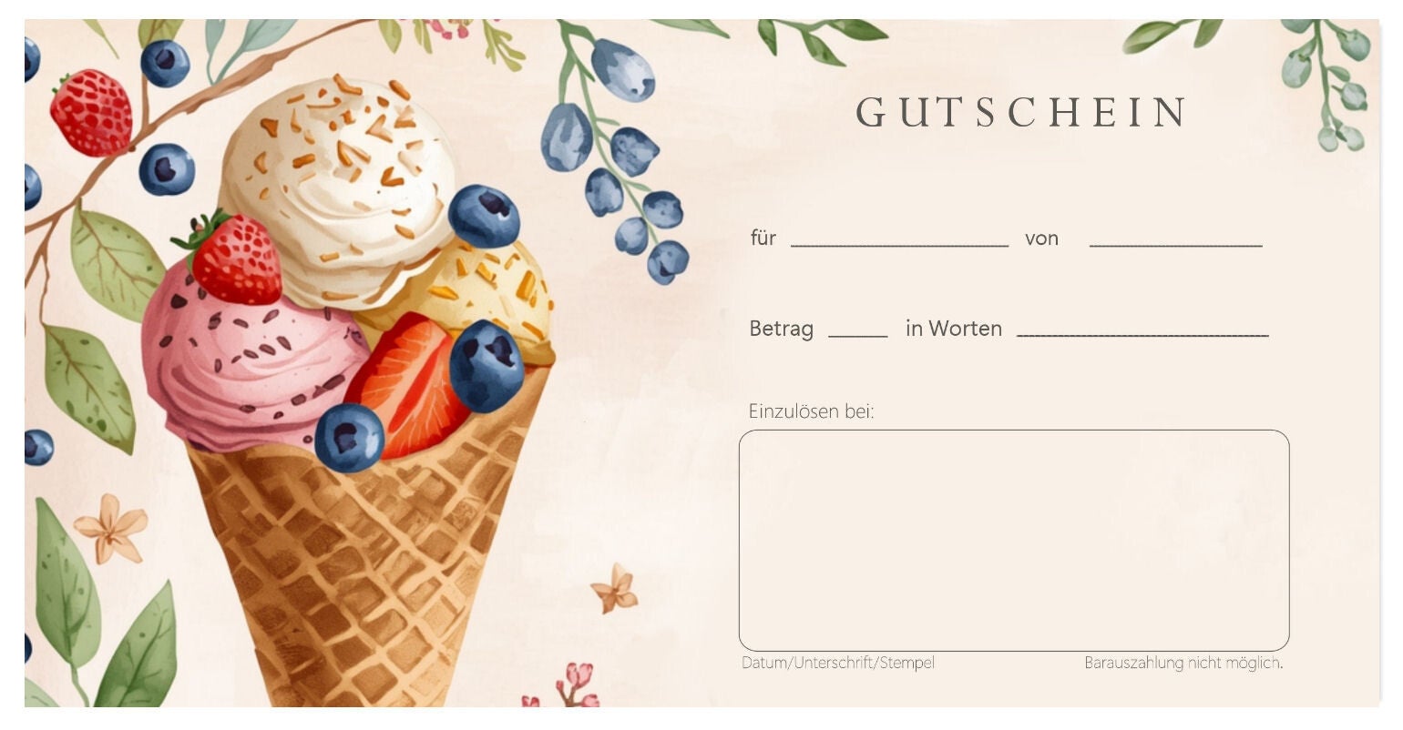Geschenkgutschein für Gastronomie (F393) Bäckerei Cafe Eisdielen Cafeteria Restaurant